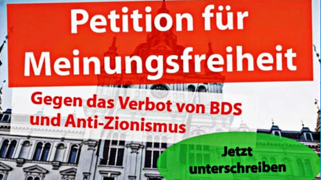 - Für einen gerechten Frieden im Nahen Osten und gegen die Einschränkung der Meinungsfreiheit in Graz!Petition für die Aufhebung des „BDS-Beschlusses“ im Grazer Gemeinderat Solidarität mit PalästinaDer „BDS-Beschluss“ des Grazer Gemeinderates vom 14. November 2019 im Wortlaut: „Städtische Dienststellen dürfen keine Veranstaltungen von Gruppierungen unterstützen, welche die Ziele der BDS-Bewegung (,Boycott, Divestment, Sanctions‘) verfolgen oder für diese werben.“ Was dieser Beschluss in der Praxis bedeutet: Zum Beispiel: Die Steirische Friedensplattform möchte einen Filmabend… Weiterlesen »Für einen gerechten Frieden im Nahen Osten und gegen die Einschränkung der Meinungsfreiheit in Graz!